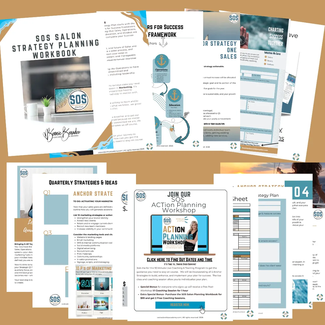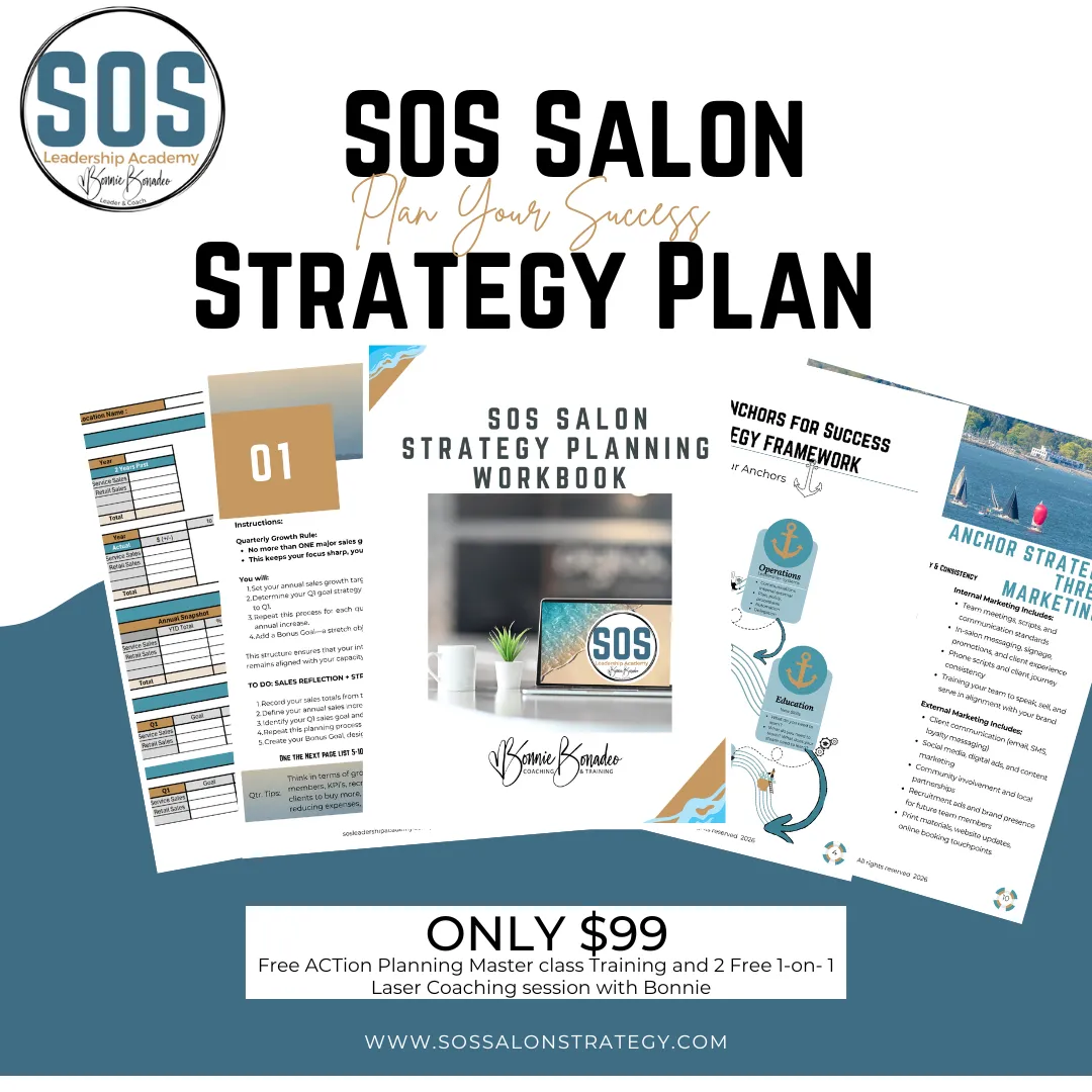 The SOS Salon Success Blueprint is a 40-page strategic planning guide designed for salon owners who are ready to stop reacting and start leading with intention.